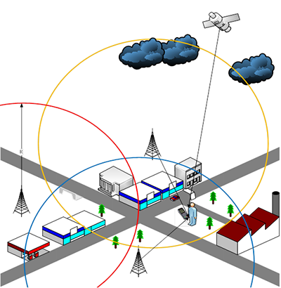 ? 多点定位:目前新大陆公司实现的基站定位还可以通过多个基站覆盖区域的并交运算,限定无线终端在更精细的区域内使用,限定的精细程度受影响的因素有:基站部署的密集度、单个基站的信号覆盖能力等。