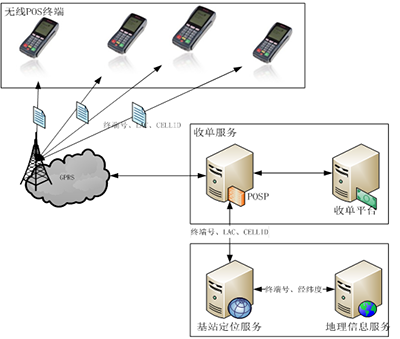 无线POS终端在工作时,也活跃在GSM网中,自然也可以通过获取基站信息而对自身进行定位,因此基站定位技术对工作中的无线POS终端,可以说是没有盲区的。虽然对应GPS定位系统,基站定位的误差较大,但无线金融POS终端的位置管理需求远大于轨迹管理需求,所以基站定位技术以其良好的性价比更加适用于无线POS终端的管理。